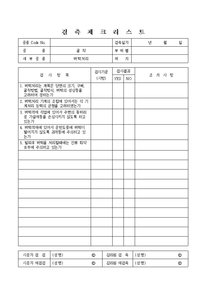 9,000원/월터널공사,굴착,버럭처리 검측 체크 리스트입니다.
