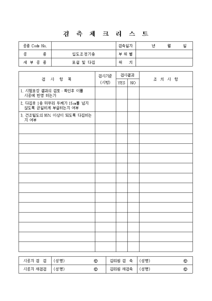 9,000원/월포장공사,입도보정기층,포설및다짐③ 검측 체크 리스트입니다.