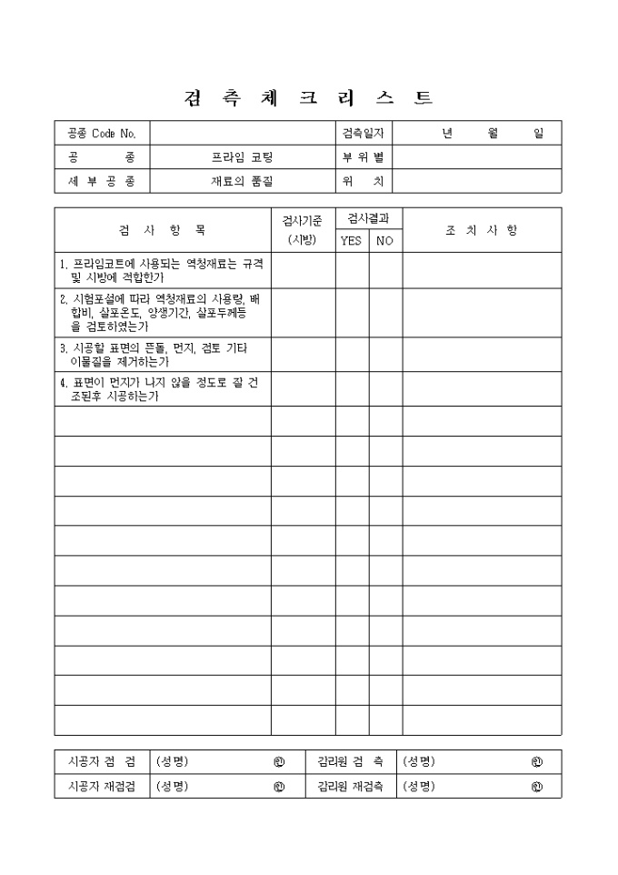 포장공사,프라임코팅,재료의품질⑦ 검측 체크 리스트입니다.