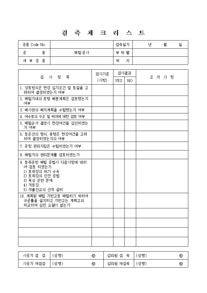 항만공사,매립공사① 검측 체크 리스트 입니다.