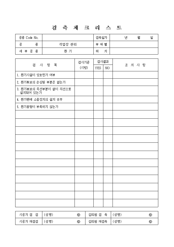9,000원/월터널공사,작업장관리,환기 검측 체크 리스트입니다.