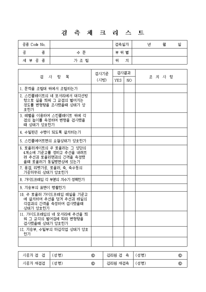 9,000원/월하천공사,수문,가조립 검측 체크 리스트입니다.