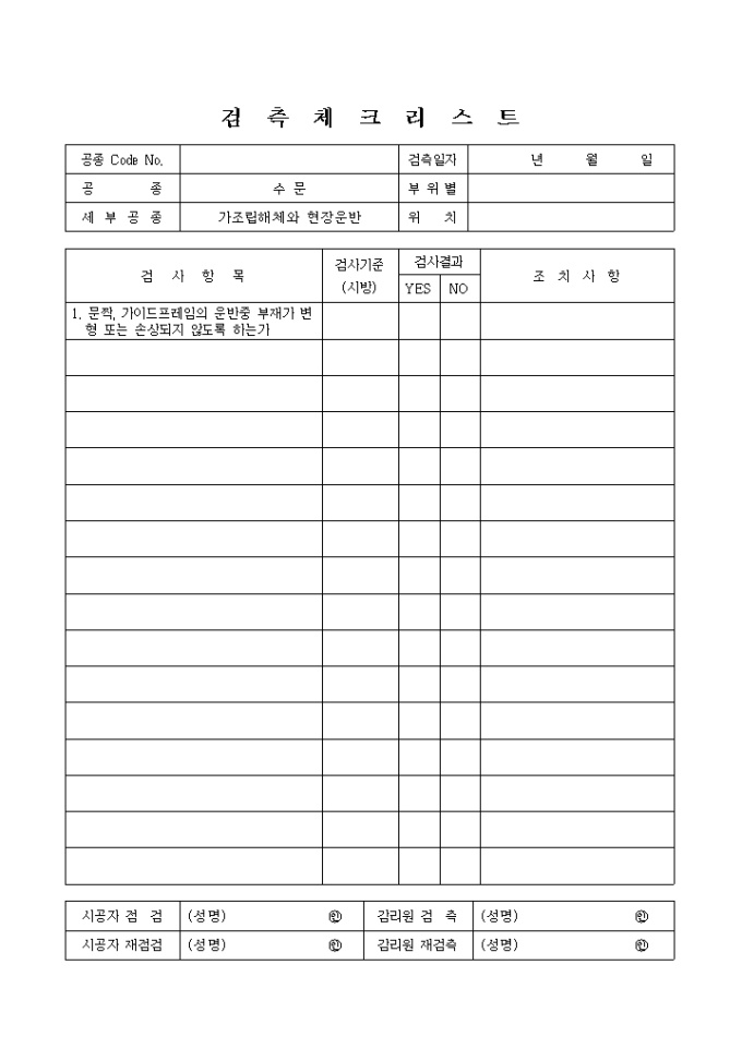 9,000원/월하천공사,수문,가조립해체와현장운반 검측 체크 리스트입니다.