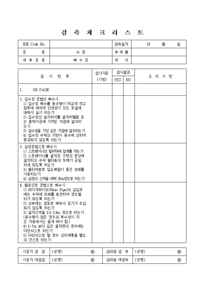 9,000원/월하천공사,수문,배수공② 검측 체크 리스트입니다.