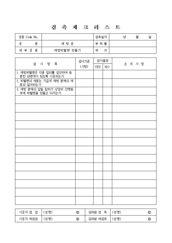 9,000원/월하천공사,제방공,제방비탈면만들기 검측 체크 리스트입니다.