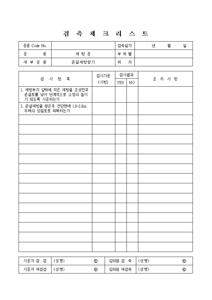 9,000원/월하천공사,제방공,준설제방 검측 체크 리스트입니다.