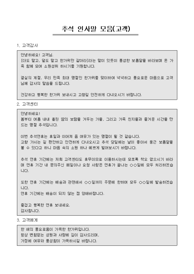 추석 인사말 모음(고객)