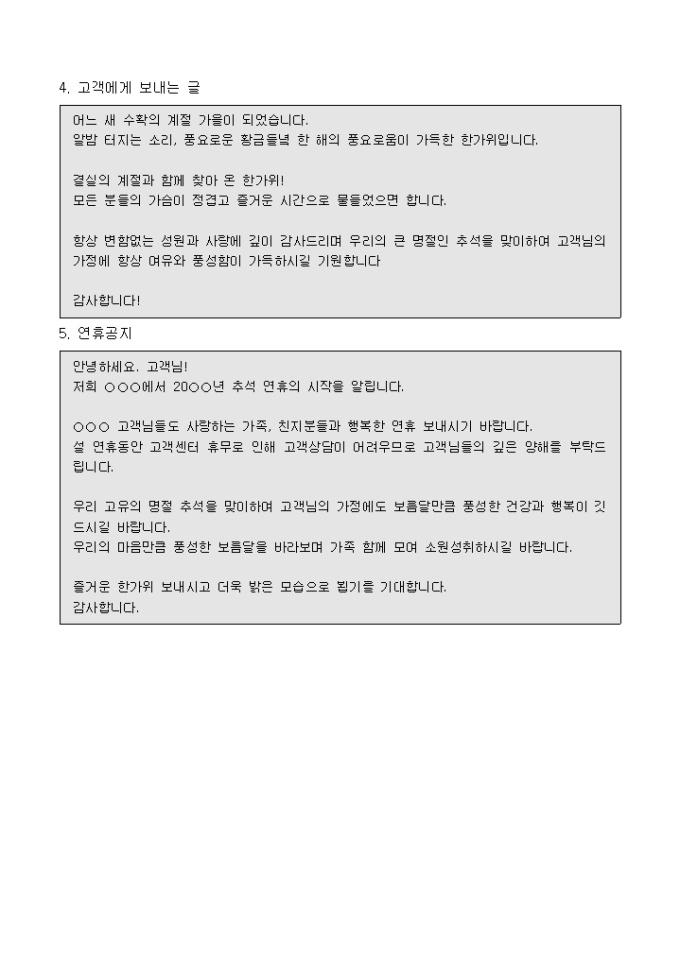# 비지니스 예문 # 인사말 # 추석 # 설날