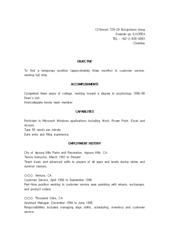 [영문이력서, resume] Temp Worker 일반사무 임시직