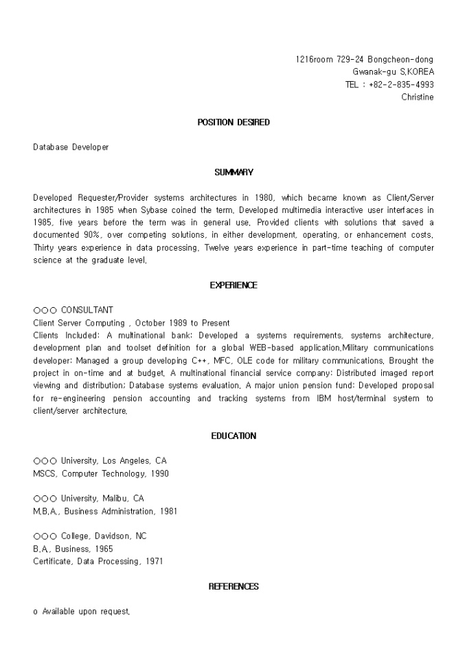 [영문이력서, resume]Visual Basic Developer(응용프로그래머)_경력