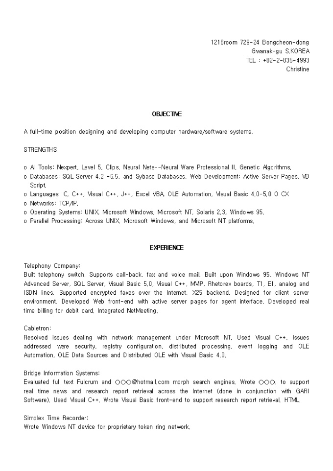 [영문이력서, resume]NT System Administrator(서버관리자)_경력