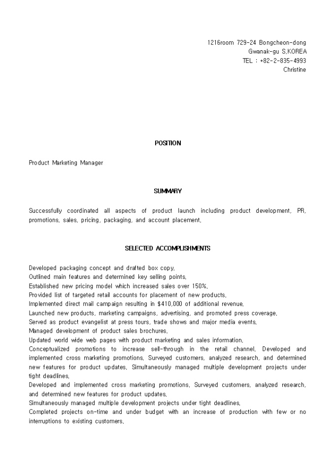 [영문이력서, resume]광고기획, PR_경력