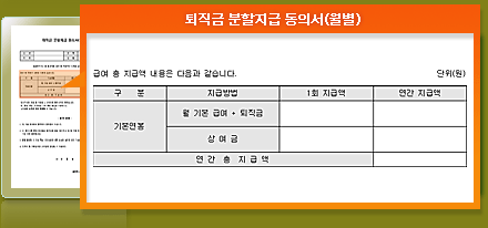 ÅðÁ÷±ÝÀ» ¿¬ºÀ ¼Ó¿¡ Æ÷ÇÔ½ÃŰÁö ¾Ê°í °è¼Ó ±Ù·Î 1³â ÀÌ»óÀÏ ¶§ ±Ù·Î¿¡ ´ëÇÑ ÅðÁ÷±Ý û±¸ ½Ã ±× Áö±ÞÀ» ±ÔÁ¤ÇØ ³õÀº ¿¬ºÀ°è¾à¼­ ÀÔ´Ï´Ù. ±Ù·Î°è¾à±â°£, ±Ù¹«Àå¼Ò ¹× Á¾»ç ¾÷Á¾, ±Ù·Î½Ã°£ ¹× ÈްԽ𣠵î 8°³ Á¶Ç× À¸·Î ±¸¼ºµÇ¾îÀÖÀ¸¸ç ¿¬ºÀÇù»ó ½Ã »ç¿ë ÇÕ´Ï´Ù.