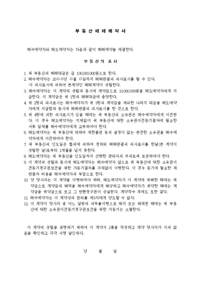 9,000원/월부동산매매예약서입니다.