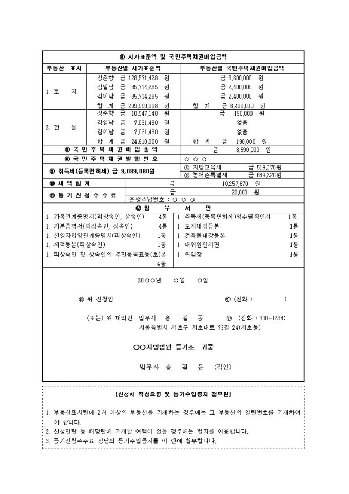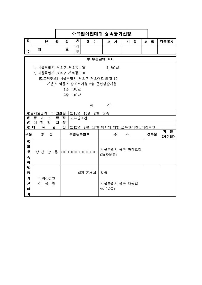 9,000원/월소유권이전대위상속등기신청서입니다.