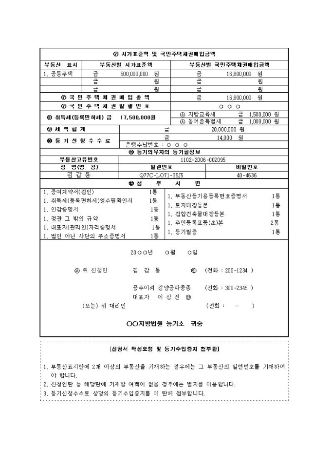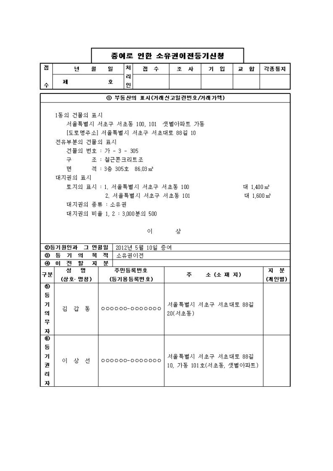9,000원/월증여로 인한 소유권이전등기신청서(1)입니다.
