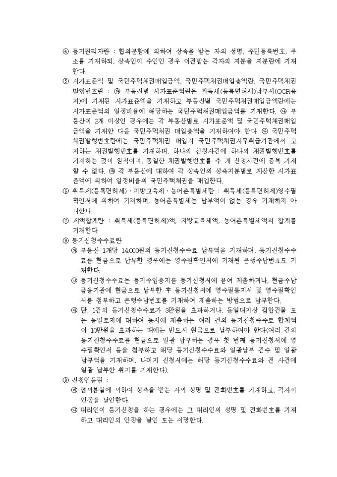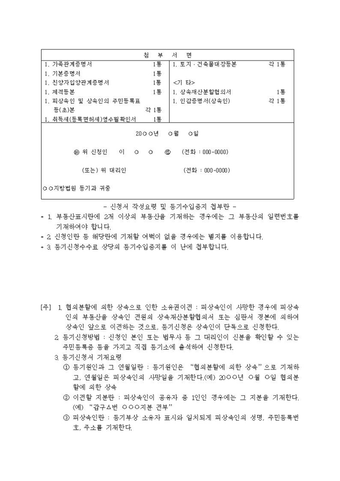 9,000원/월협의분할에 의한 상속으로 인한 소유권이전등기신청서입니다.