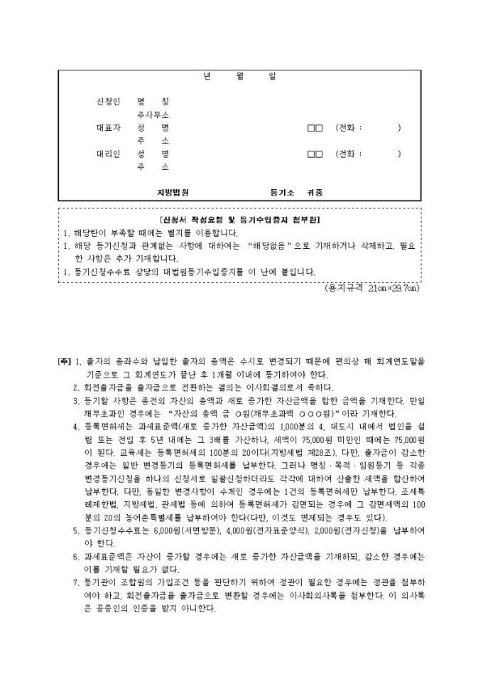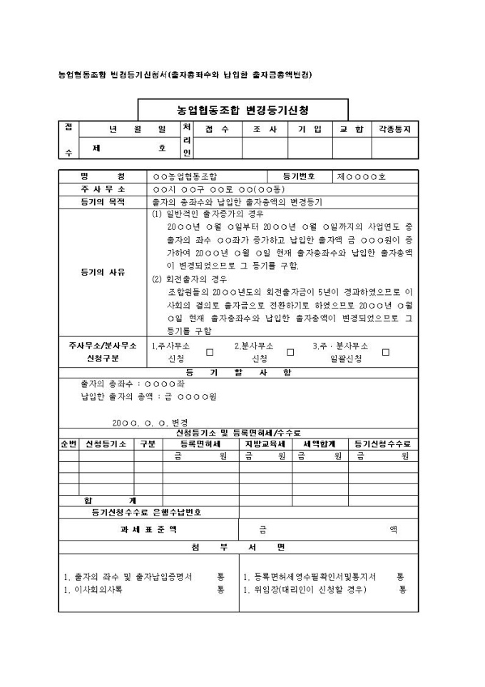 9,000원/월농업협동조합 변경등기신청서(출자총좌수와 납입한 출자금총액변경)입니다.