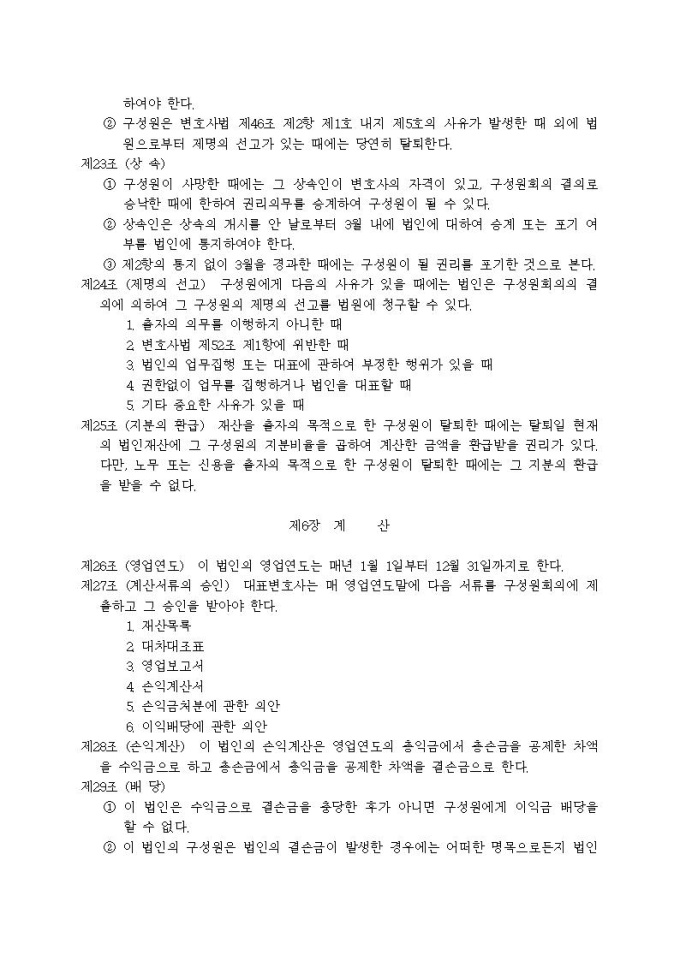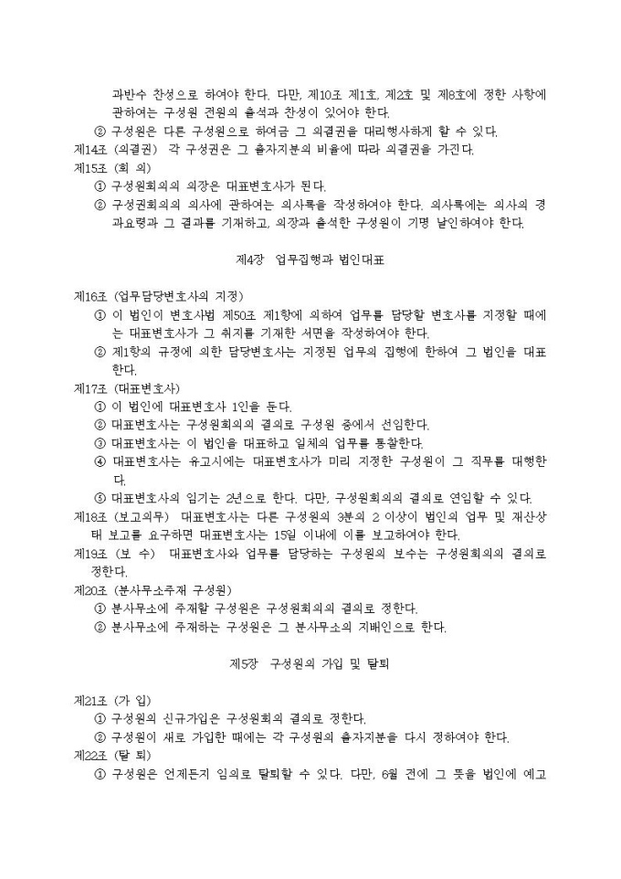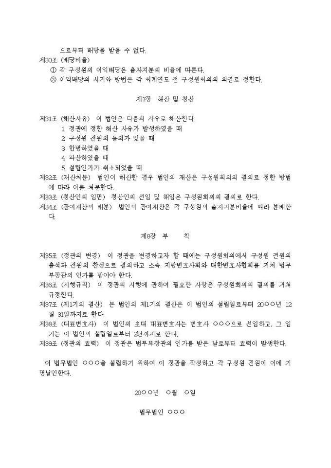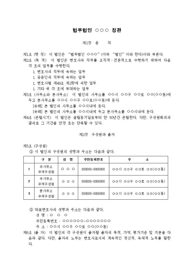 9,000원/월법무법인 설립등기신청서 [첨부서류 1] 법무법인 정관입니다.