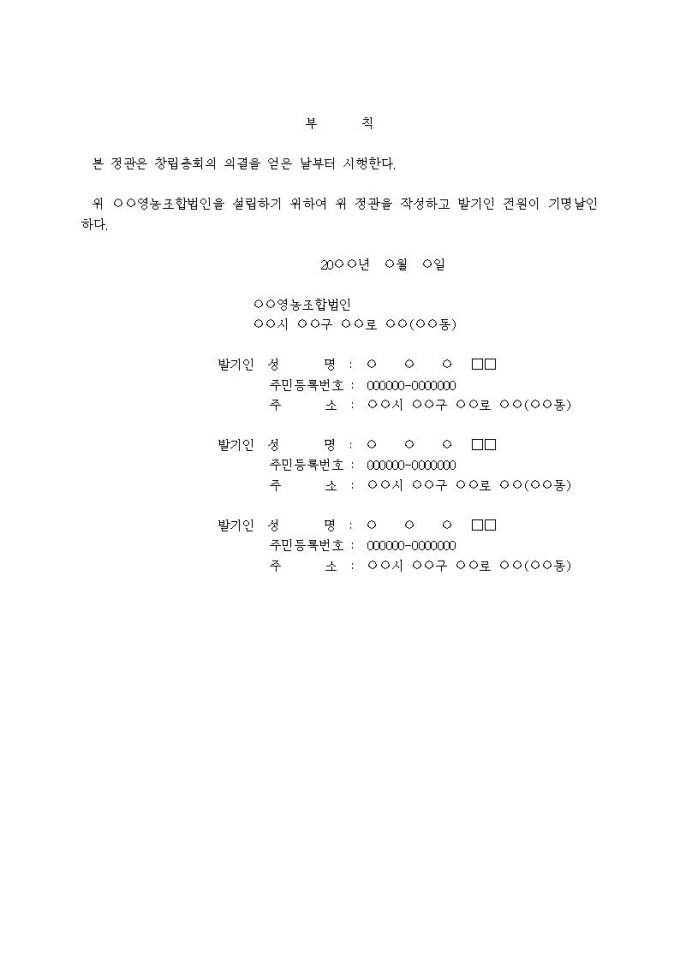 9,000원/월영어조합법인 설립등기신청서 [첨부서류 2] 영어조합법인 정관례입니다.