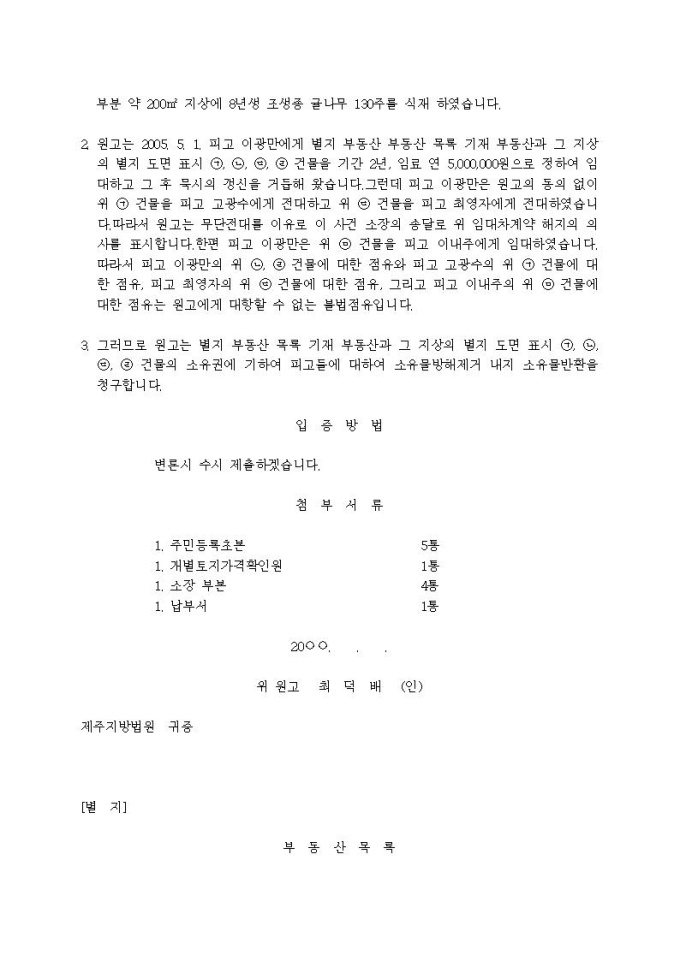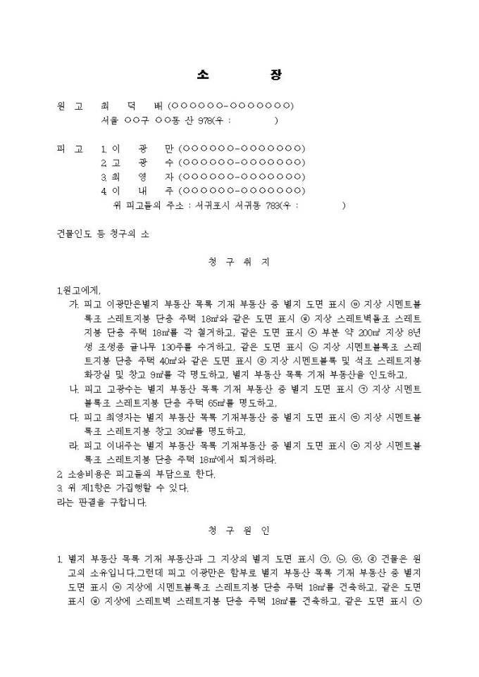 9,000원/월건물인도등청구 소장(건물인도, 토지인도, 건물철거, 건물퇴거, 수목수거, 물권적 청구권, 간접점유자사건)입니다.