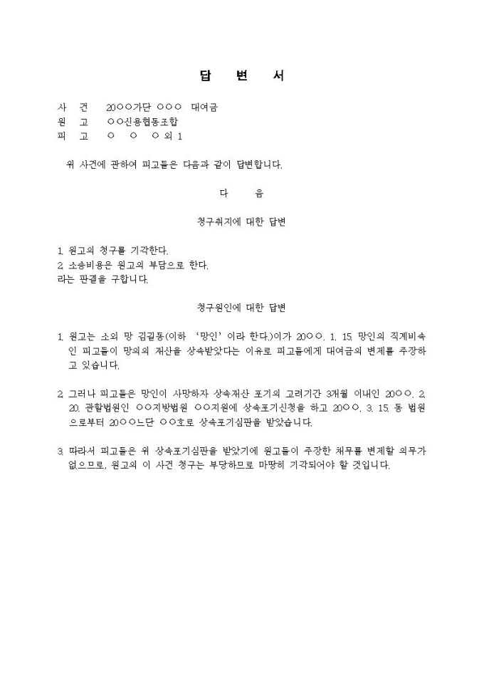 9,000원/월(답변서)대여금관련(상속포기)입니다.