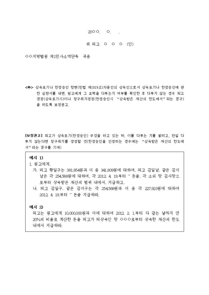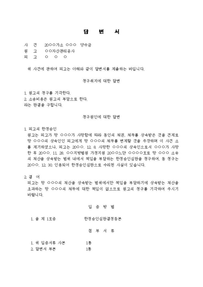9,000원/월(답변서)양수금관련(한정승인)입니다.