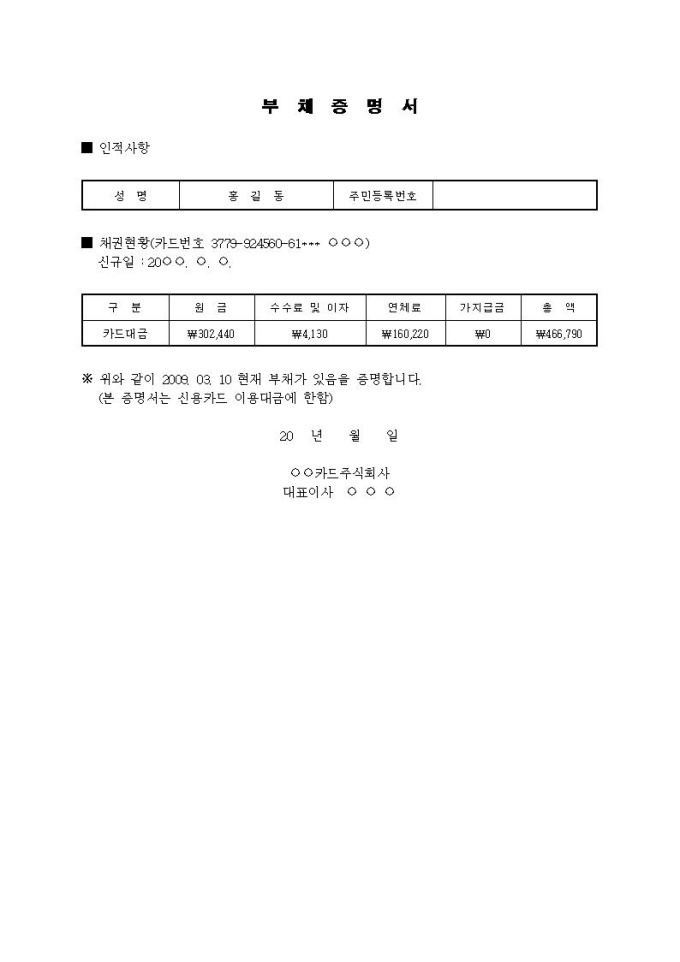 9,000원/월부채증명서입니다.
