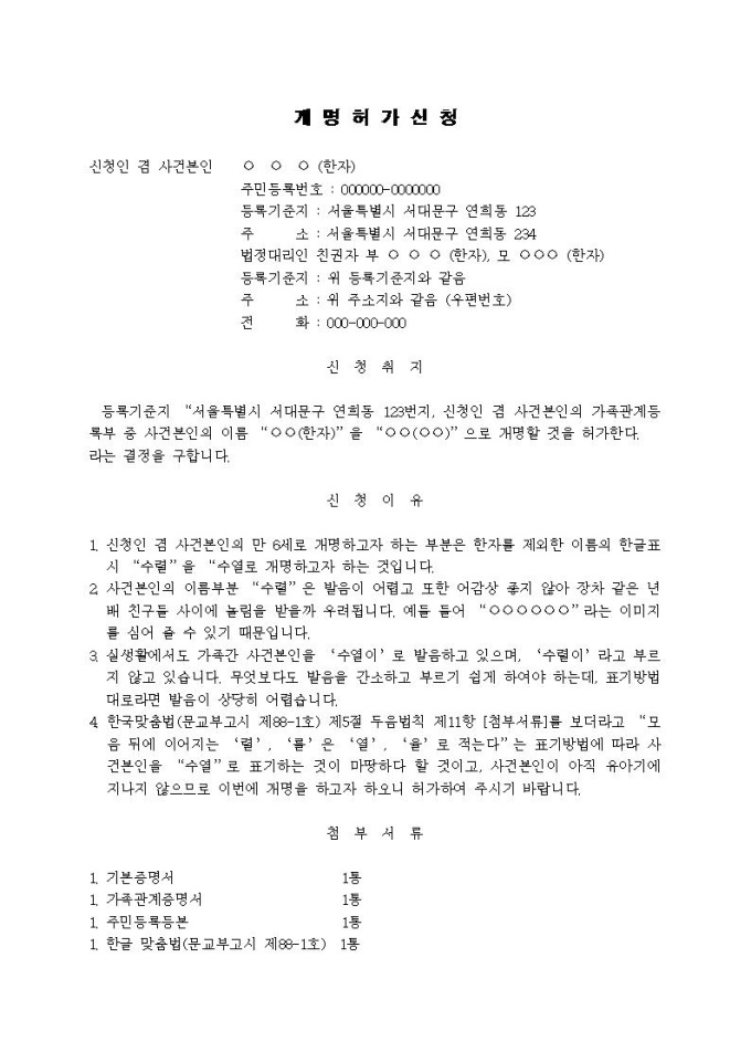 9,000원/월개명허가신청(성명발음이 힘들고 의미가 좋지 않은 경우)입니다.