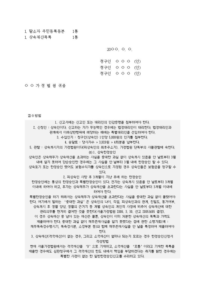 9,000원/월상속한정승인 청구서(7)입니다.