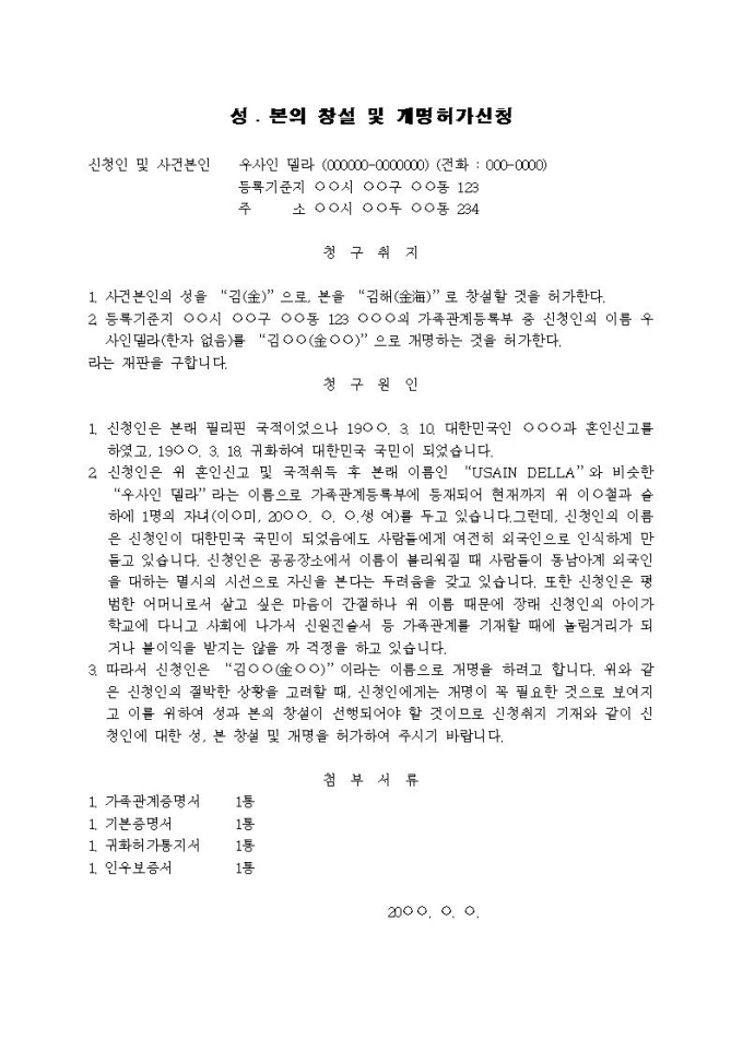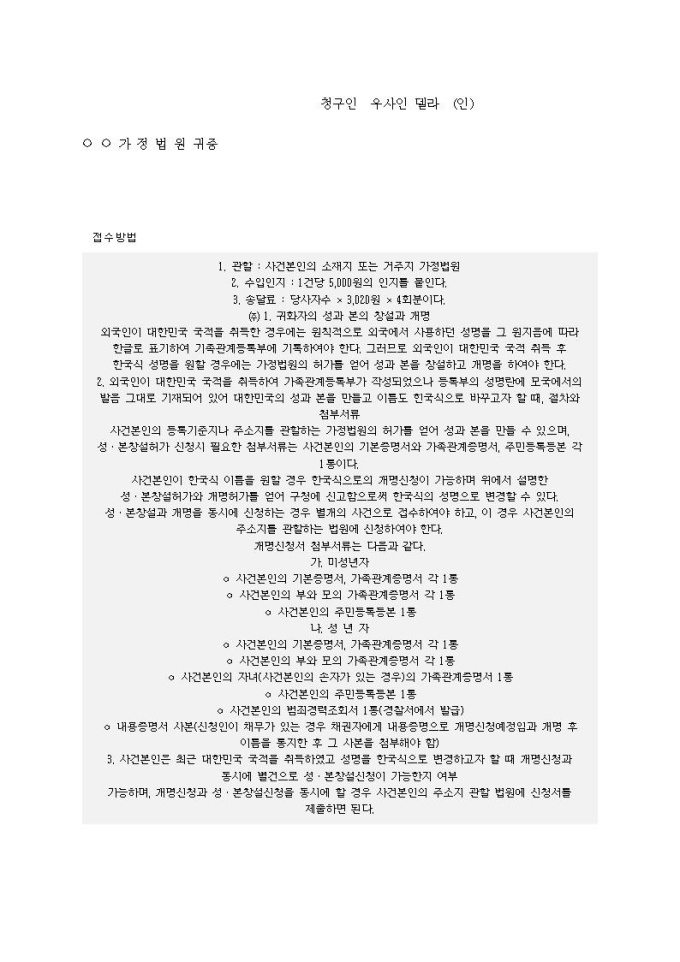 9,000원/월성ㆍ본의 창설 및 개명허가신청(귀화자의 성과 본의 창설과 개명)입니다.