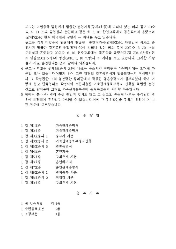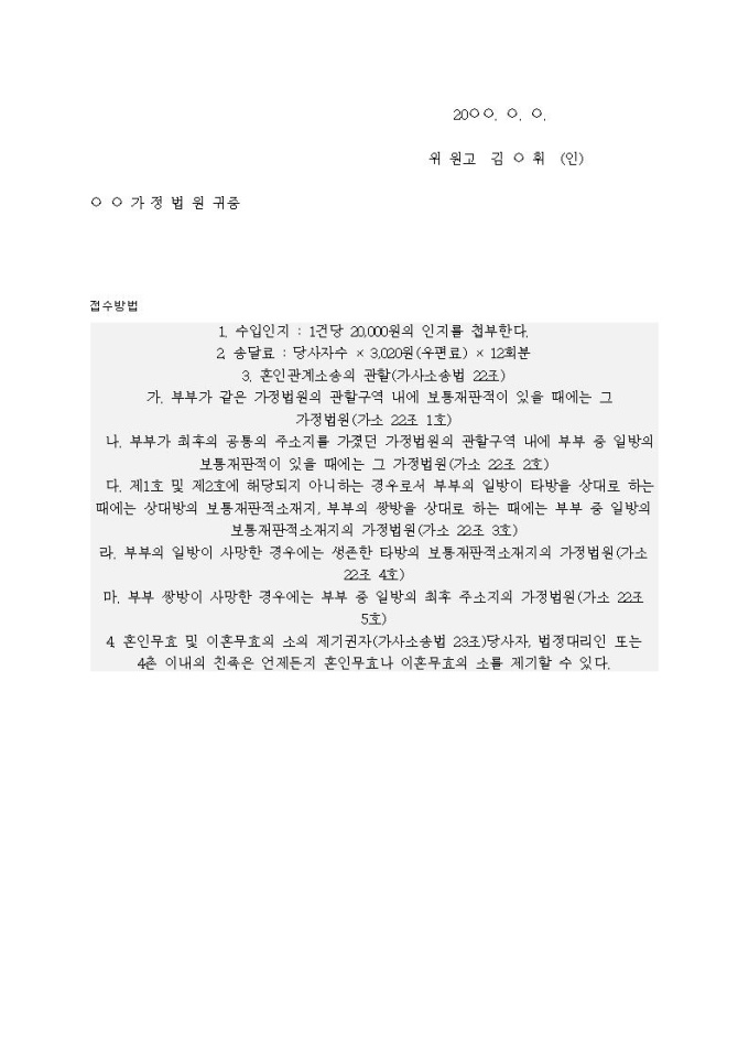9,000원/월혼인무효확인 청구의 소장(합의없이 한 혼인신고)입니다.