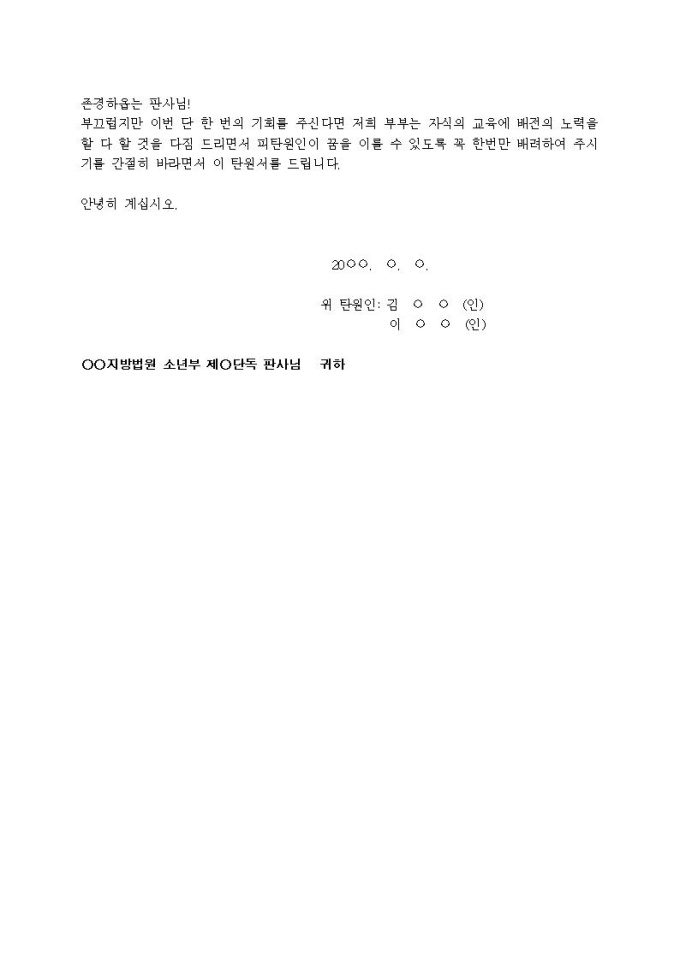 9,000원/월(탄원서)판사에게 구속된 자식을 선처 호소입니다.