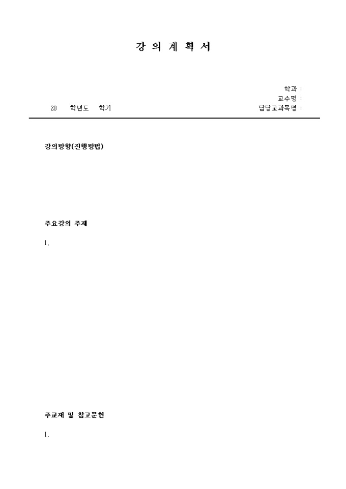 9,000원/월강의방향,주요강의 주제,주고재 및 참고문헌을 기재하는 강의계획서입니다,