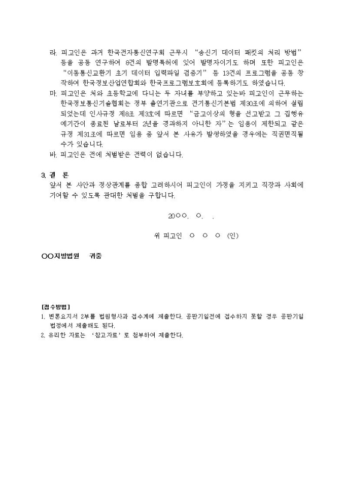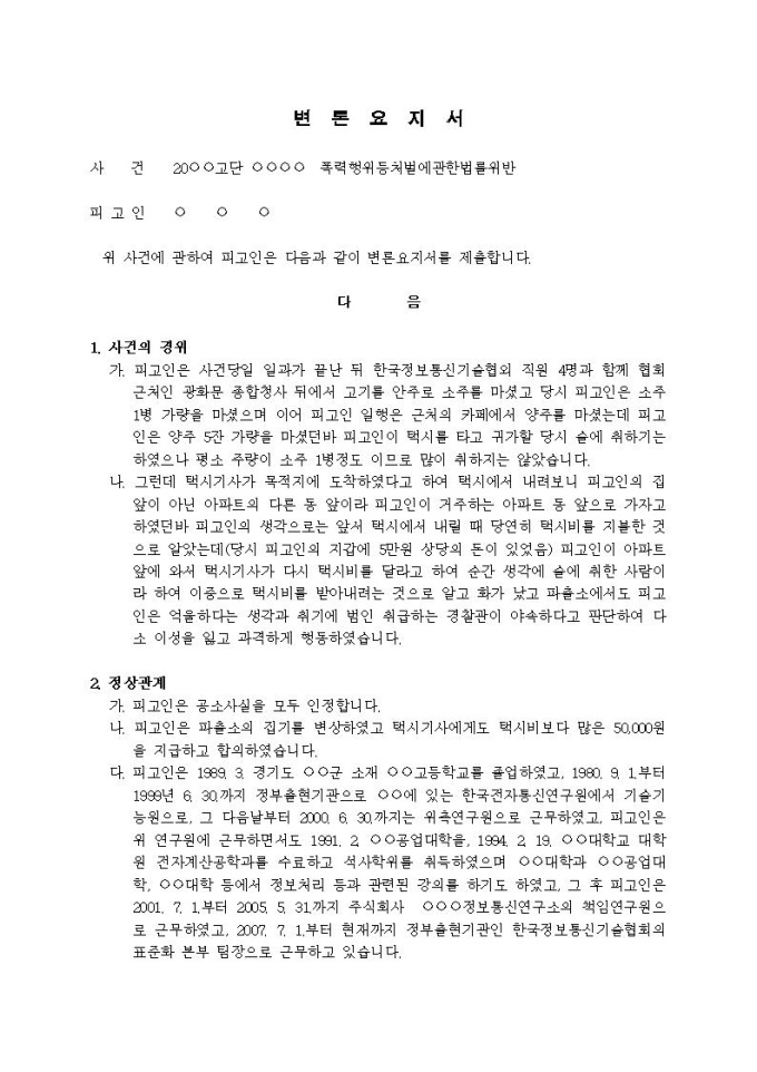 9,000원/월변론요지서(2) (범죄사실인정, 불구속피고인)입니다.