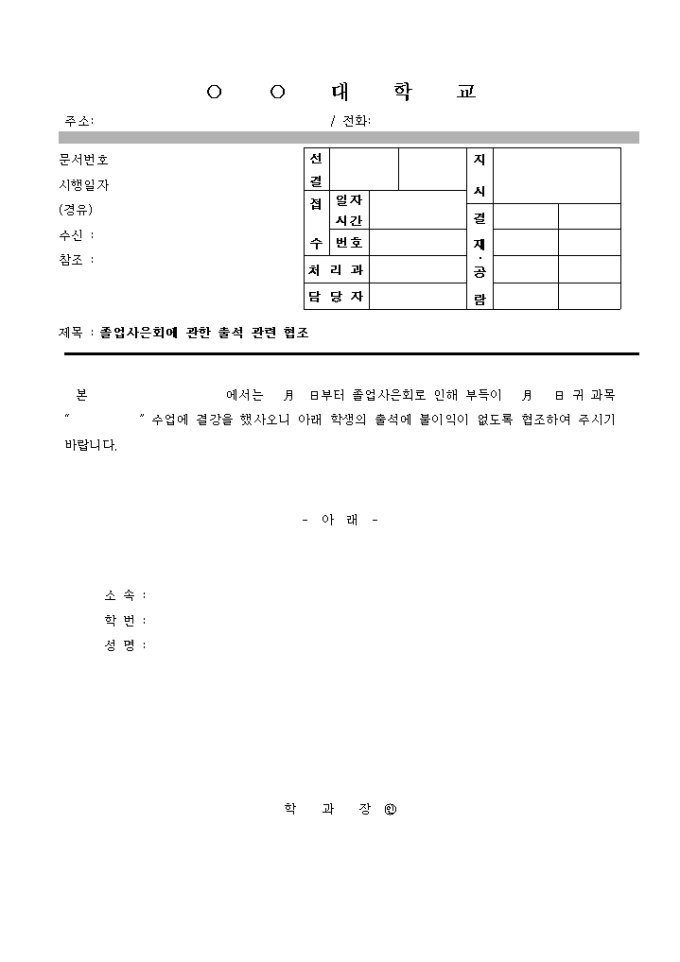 9,000원/월졸업사은회에 관련해 수업에 결강을 한다는 내용은 공문입니다.