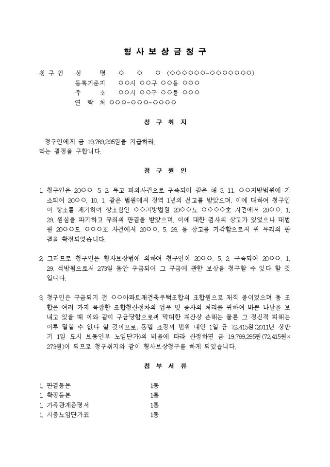 9,000원/월형사보상금청구서(3) (시중노임단가 적용)입니다.