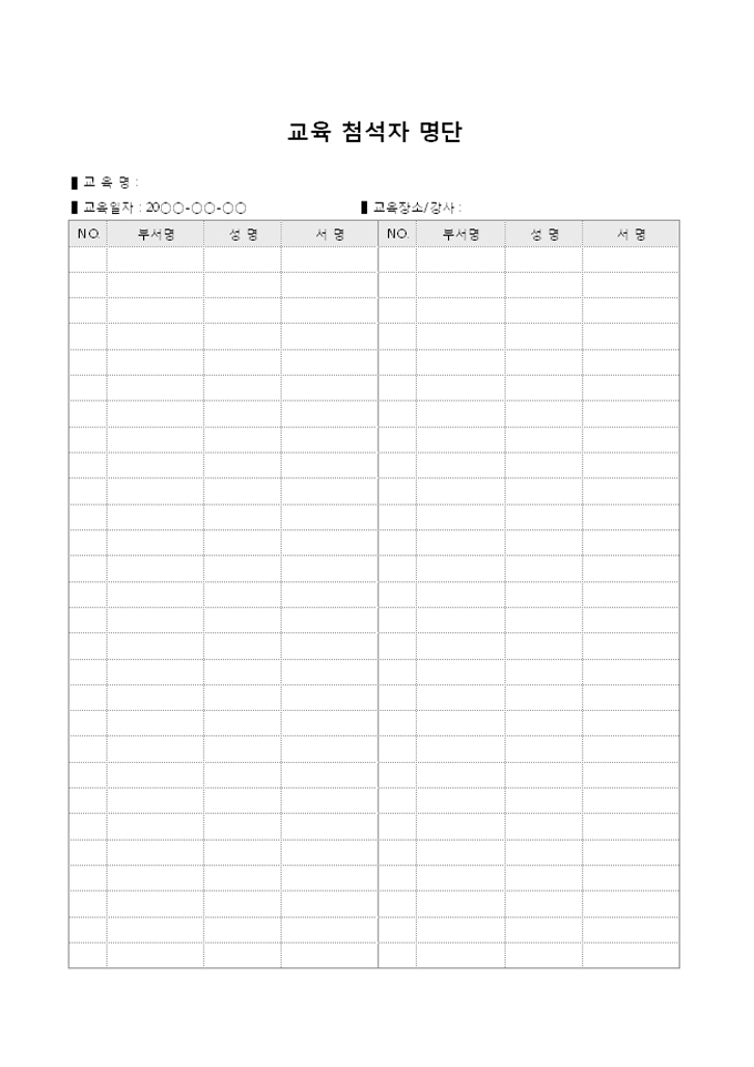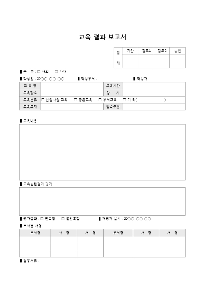 9,000원/월교육결과보고서(참석자명단 포함)입니다. 교육명, 교육시간, 교육장소, 강사, 교육분류 등의 항목과 명단시트로 구성되어 있습니다.