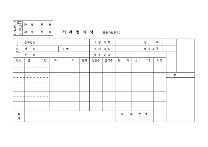 9,000원/월거래 물품의 상세 내역과 공급자의 정보를 기재하는 공급자보관용 거래명세서입니다.