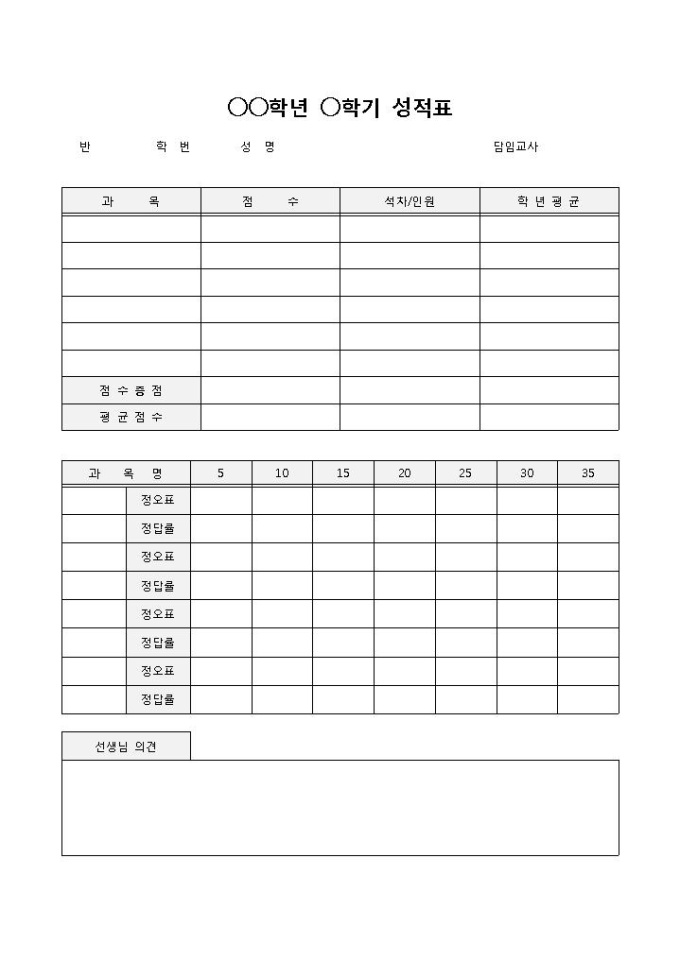 9,000원/월기말고사성적표 입니다. 과목명, 점수, 석차, 학년평균 등으로 구성되었으며, 정오표와 정답률을 통해 학생의 오답률까지 확인할 수 있습니다.