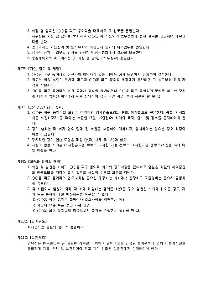9,000원/월동아리회칙입니다. 명칭, 목적, 소재 등의 항목으로 구성되어 있습니다. 부칙을 포함하여 총 5장 13조항으로 구성되어 있으며 동 피구동아리에서 회칙으로 사용할 수 있는 양식입니다.