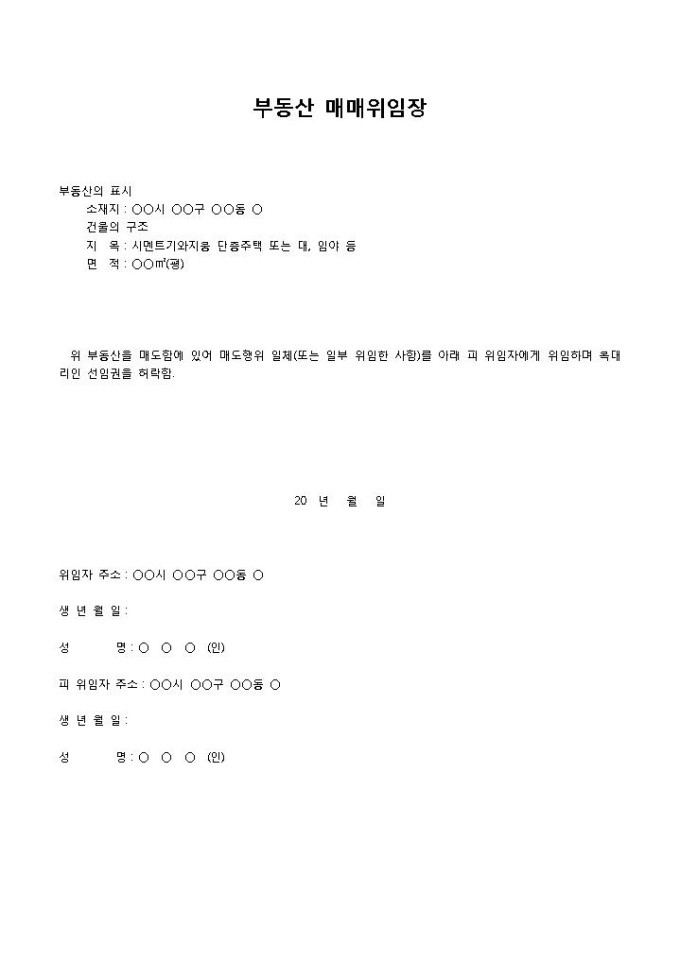 9,000원/월매매위임장입니다. 부동산의 소재지, 건물의 구조 등의 항목으로 구성되어 있습니다. 부동산 매매 행위에 대한 위임 시 사용할 수 있는 위임장양식입니다.
