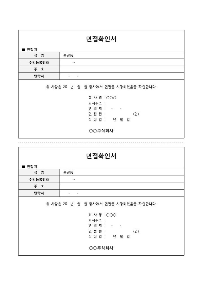 9,000원/월면접을 받았다는 확인을 위해 쓰이는 면접자를 포함한 면접확인서 양식입니다. 면접자의 인적사항 등의 항목으로 구성되어 있습니다.