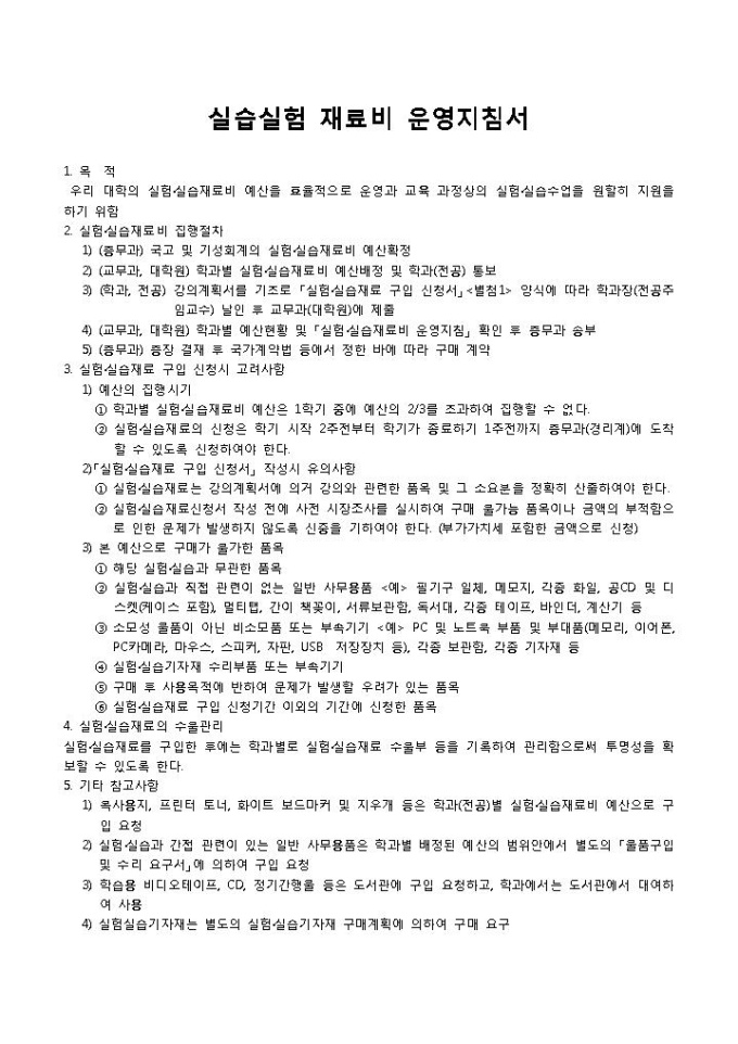 9,000원/월실습실험 재료비 운영지침서입니다. 실습에 필요한 재료비의 운영지침 내용으로 구성되어 있습니다. 대학의 실험실습재료비 예산을 효율적으로 운영하고 교육 과정상의 실험실습수업을 원활히 지원하기 위해 운영지침서로 작성하여 사용할 수 있습니다.