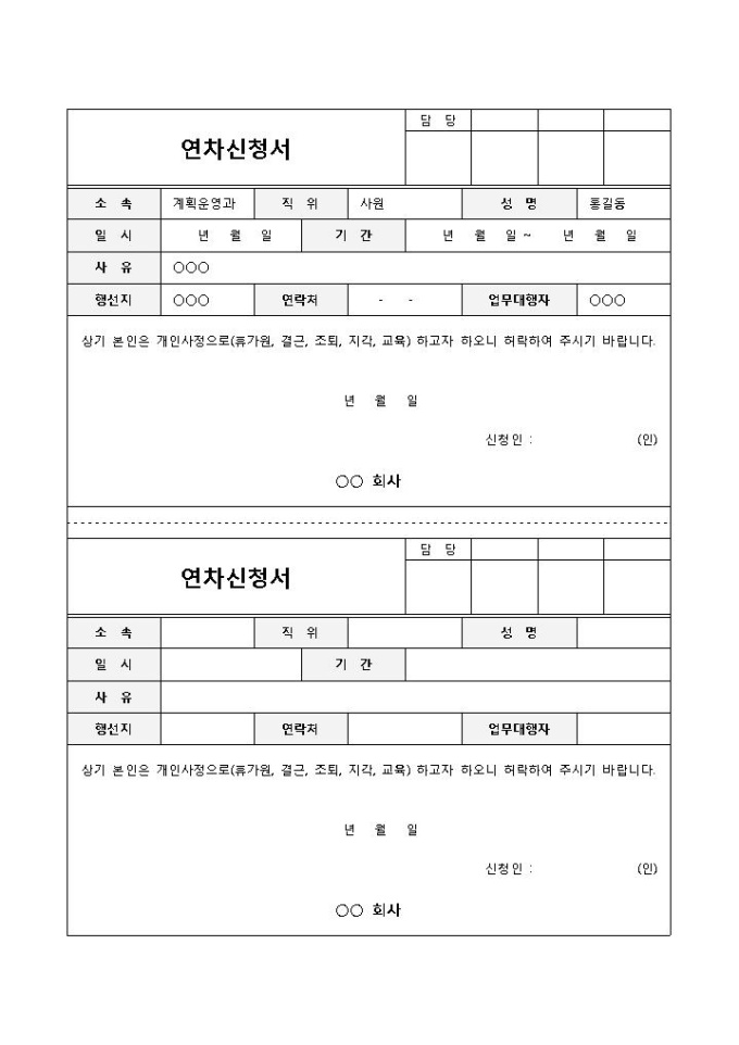 9,000원/월작성자의 개인의 사정(휴가원, 결근, 조퇴, 지각, 교육)으로 인해 연차의 허락을 받을 때 사용되는 연차신청서 양식입니다. 결재라인과 함께 작성자의 인적사항 등의 항목으로 구성되어 있습니다.