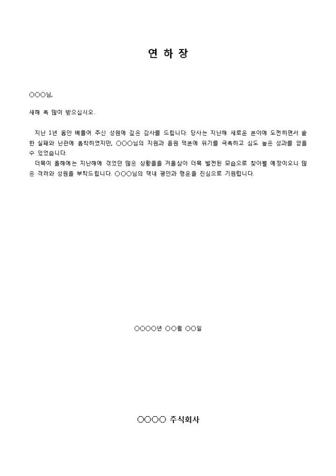 9,000원/월연하장 인사말 입니다. 새해에 접어들면서 지난 해에 있었던 여러사항들에 대한 감사의 인사말이 담겨있습니다.