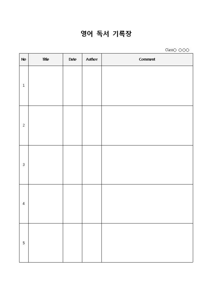 9,000원/월영어독서기록장입니다. 책제목, 날짜, 저자, 느낀점 등의 항목으로 구성되어 있습니다. 간략한 느낀점과 함께 독서 목록을 기록할 수 있는 영어 독서기록장 양식입니다.