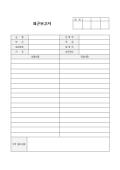 9,000원/월외근보고서입니다. 외근자의 인적사항, 외근목적, 목적지, 기간, 외근경비, 완결사항, 미결사항 등의 항목으로 구성되어 있습니다. 기본적인 외근 보고서 양식입니다.
