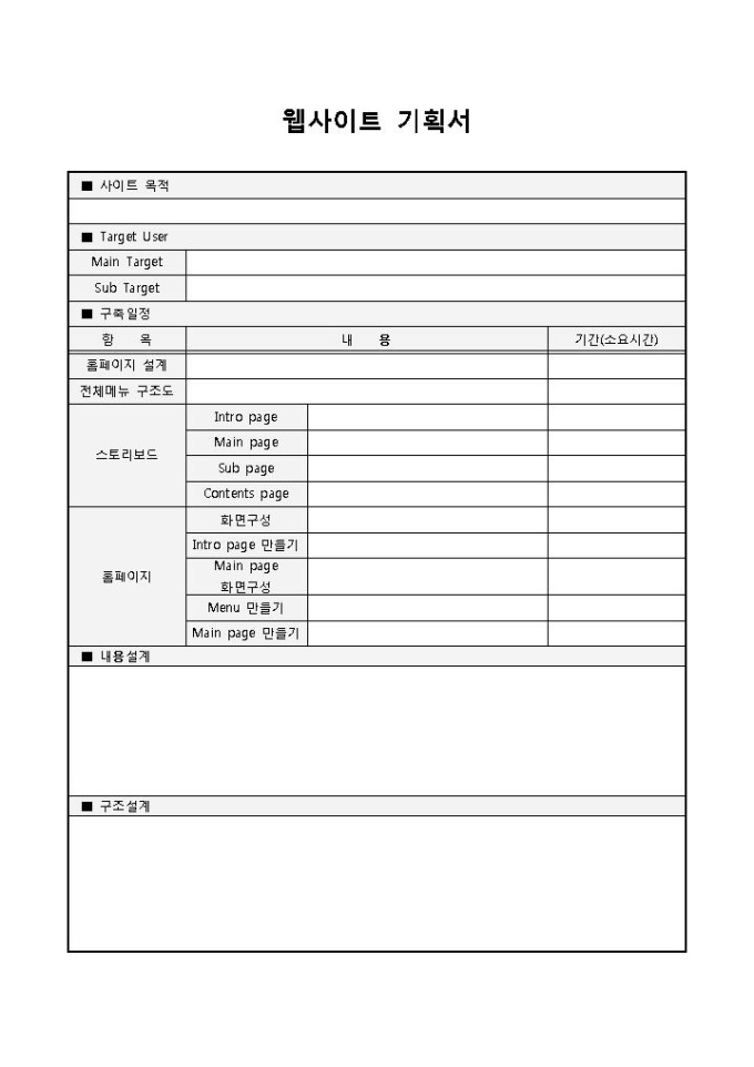 9,000원/월웹사이트 기획서입니다. 사이트목적, 목표 사용자, 구축일정, 내용 설계 등으로 구성되어 있습니다. 기업의 광고나 개인 목적으로 웹사이트에 대한 기획을 할 때 작성하여 사용할 수 있습니다.