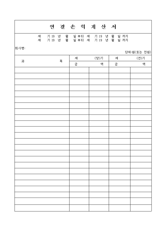 9,000원/월연결손익계산서 양식입니다. 과목별 당기와 전기의 항목으로 구성된 양식입니다.